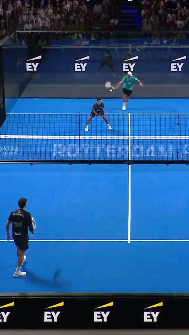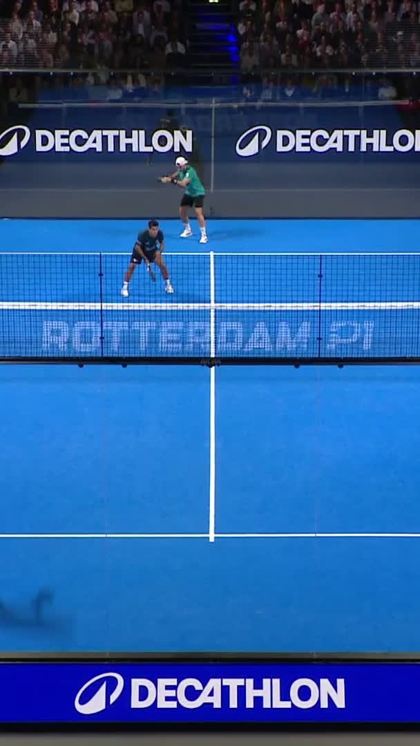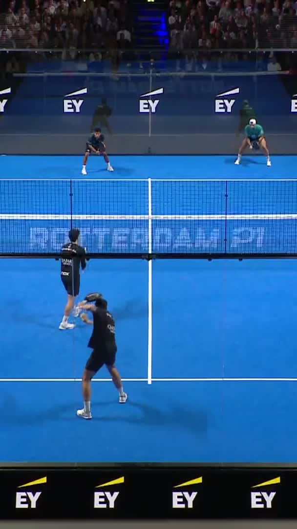 Tapia envía la bola al borde tras una gran devolución de Galán
